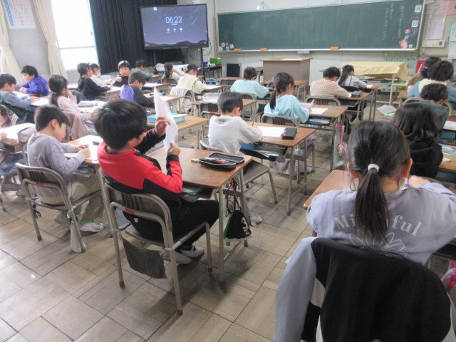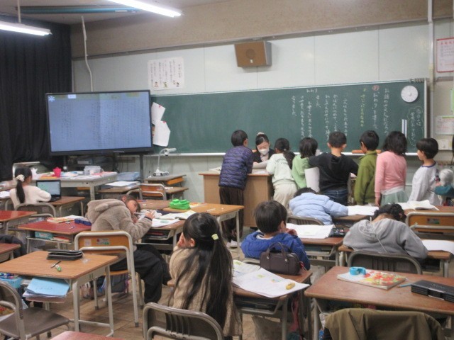 道徳、国語の授業です。3枚目の道徳では、「ぐみの木と小鳥」のお話を読み、困っている人がいたらどうするのか、考えました。