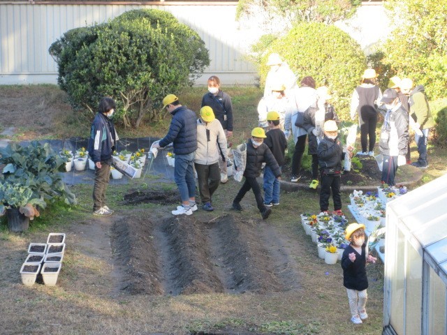 ふれあいの授業の様子です。1枚目の画像は、ふれあいの畑で育てた長ネギを収穫しているところです。