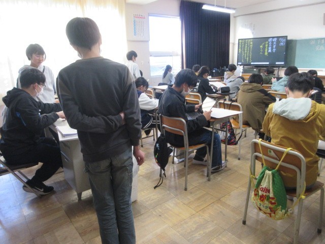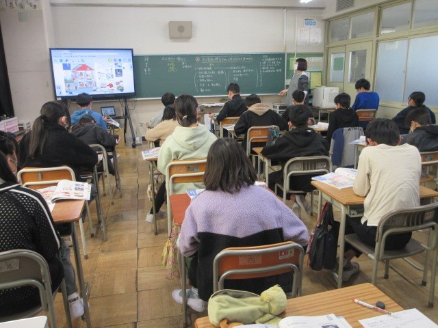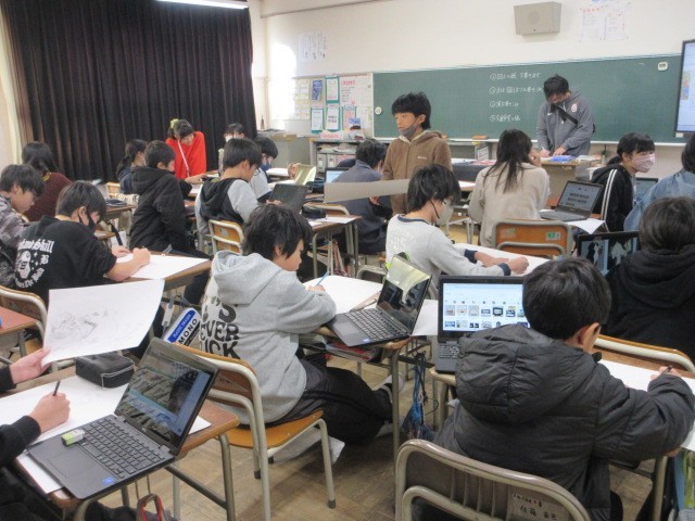 家庭、図工の授業です。1枚目の家庭では、冬の生活の特徴から生活で工夫していることを考えました。