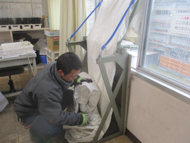 中舎3階5年2組の教室にある救助袋の点検をしました。