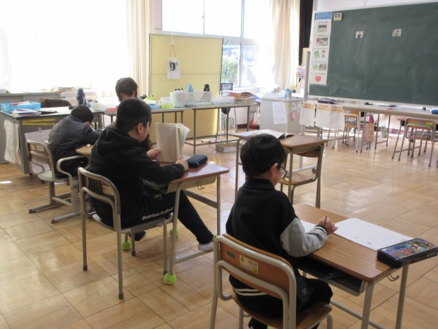 1年生の算数、2年生の体育、3年生の社会、ふれあい学級の国語の学習の様子です。