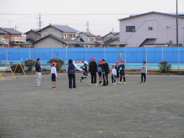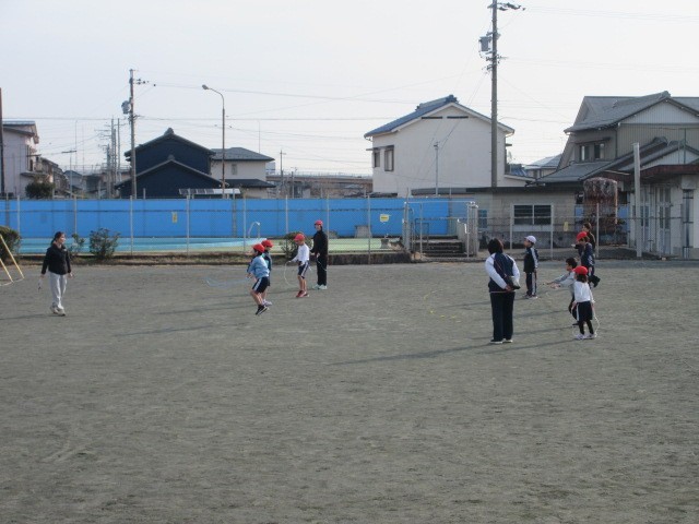 体育の授業の様子です。なわとびを使った運動に挑戦しました。