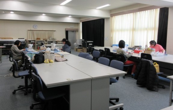 今日も、それぞれお時間のある時に来校していただき、図書館の本の修繕、教室の小窓用カーテンづくりを進めていただきました。