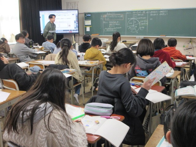 算数、社会の授業です。1,3枚目の算数では、帯グラフや円グラフの特徴について調べ、まとめました。