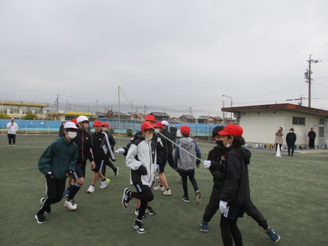 今日の4時間目になわとび集会がありました。挑戦跳びであや跳びや交差跳びなど練習の成果を披露しました。目標記録を達成できた人や緊張や寒さで本来の力を発揮できなかった児童もいましたが、一生懸命に取り組む姿が見られました。その次に、長縄を行いました。2チームに分かれて8の字跳びを行いました。どのチームも力を合わせて熱心に取り組んでいました。6年間の成長を見せることができましたね。