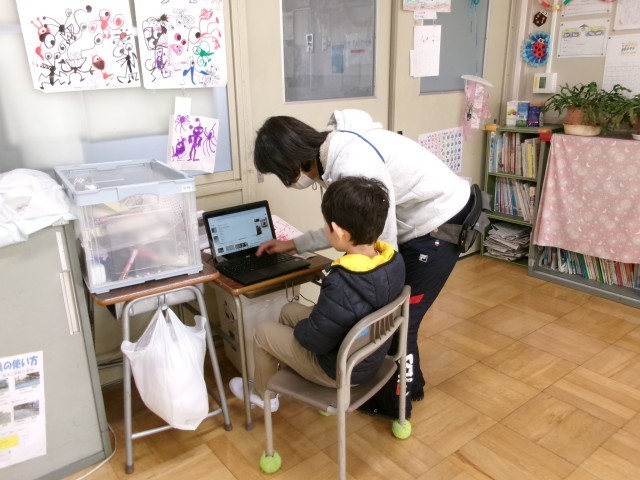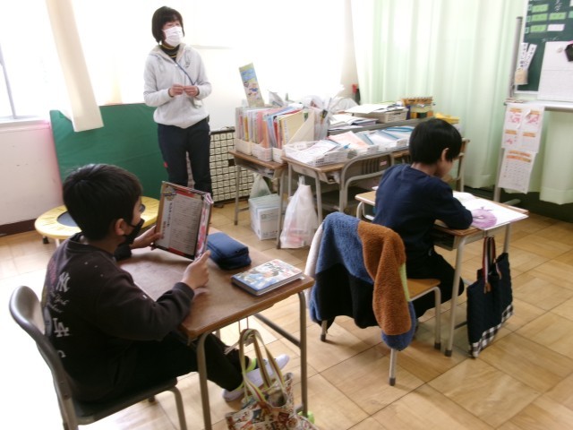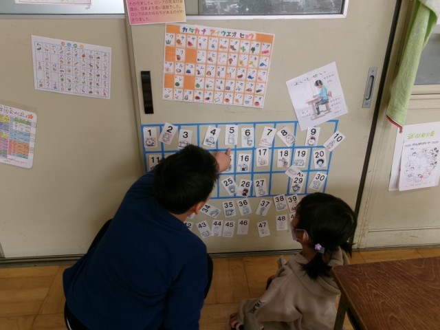 ふれあいの授業の様子です。3枚目の写真は、数字を指でさしながら確認をしているところです。