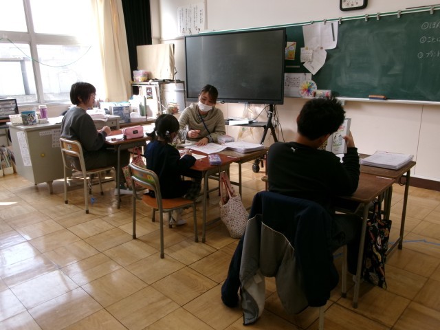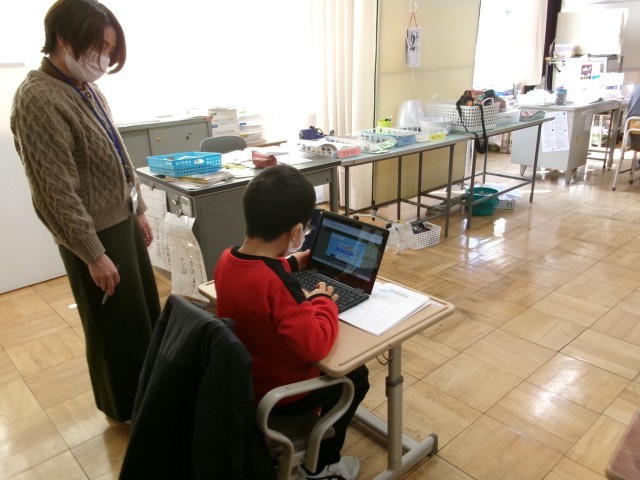 ふれあいの授業の様子です。3枚目は理科の「もののあたたまり方」の復習では、端末を利用して学習内容を確かめました。