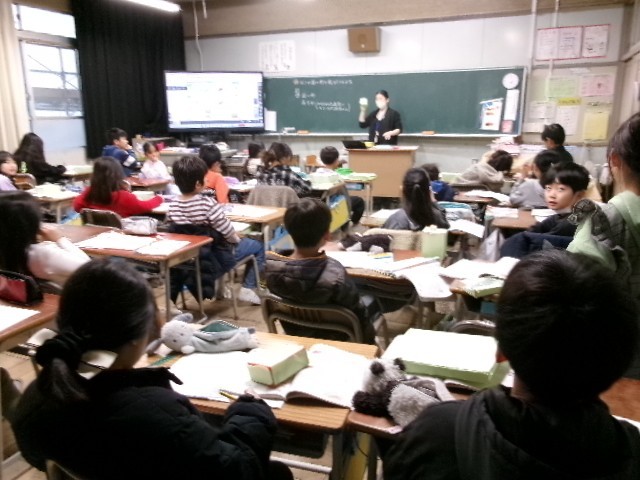 算数の授業です。はこの面の形や数を調べました。また、はこの形の辺や頂点の数を調べました。
