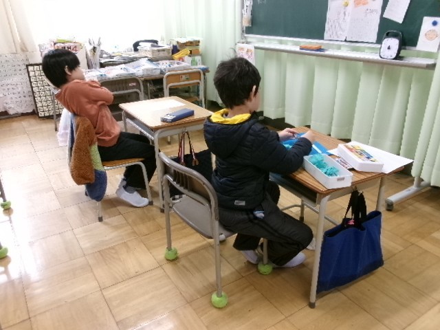 ふれあいの授業の様子です。国語や図工など、それぞれのペースで学習に取り組んでいます。