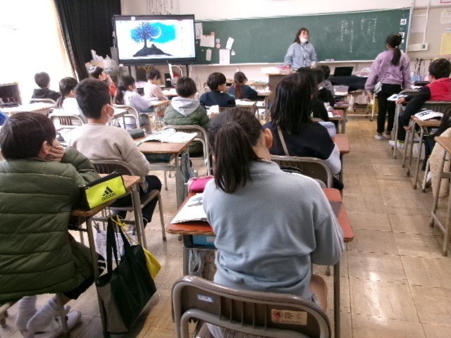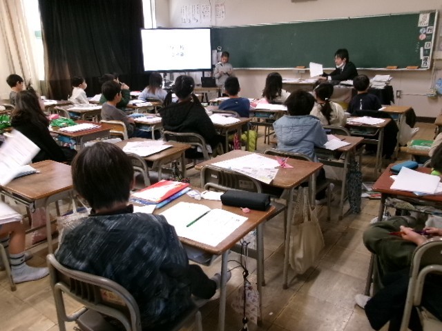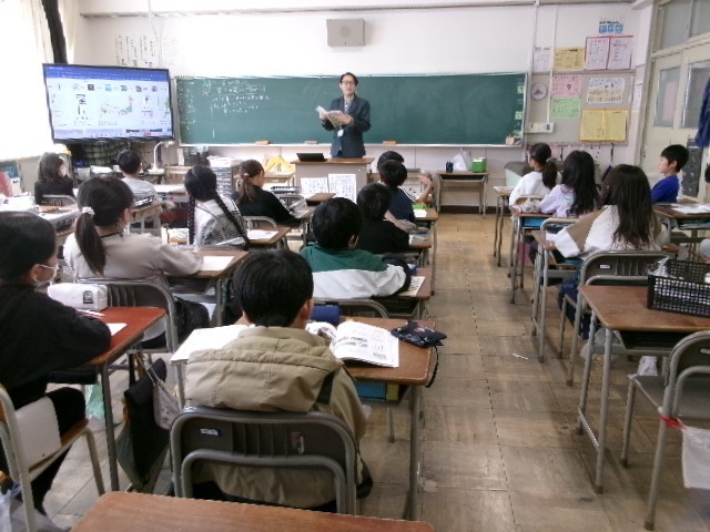 国語、社会の授業です。2枚目の国語では、自分のお気に入りの場所をスライドを使って発表しました。