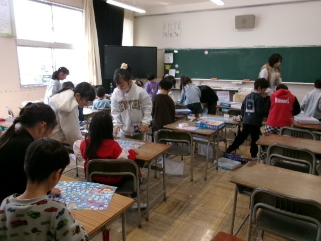 算数、国語の授業です。3枚目の算数では、すごろくゲームをしながら、100までの大きさの数を確かめました。