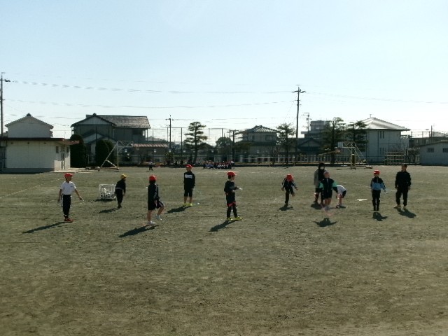 ふれあいの体育の授業です。キックベースボールのゲームも楽しみながら上手に進めることができました。