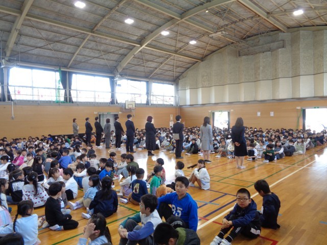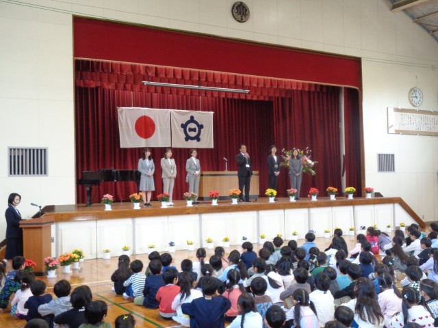 新しく赴任した教職員を紹介しました。その後、1学期の始業式を行いました。