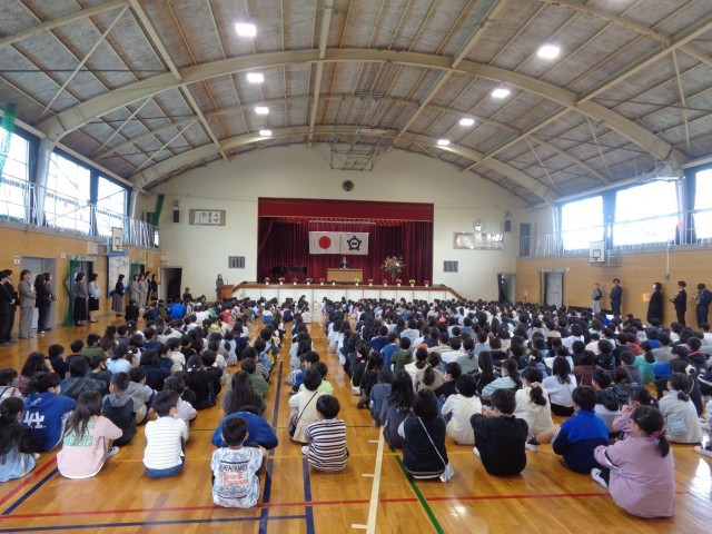 式の中で校長から、「萩原小のスローガン『美しい心 夢 たくましく生きる力』を目標に1年間チャレンジしていきましょう」との話と、みんなが楽しい気持ちで学校生活を送ることができるように「自分の命 周りの人の命を大切にしよう」との話がありました。