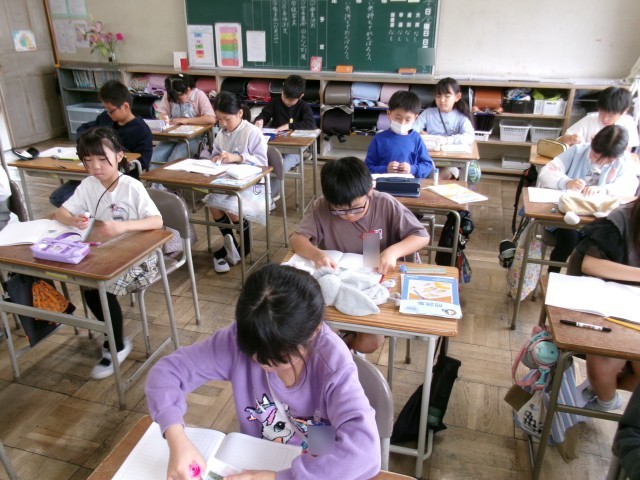 算数の授業の様子です。一億をこえる数の学習をしました。前回のまとめを生かして、どのように数えるとよいかを発表したり、ノートに書いたりすることができました。