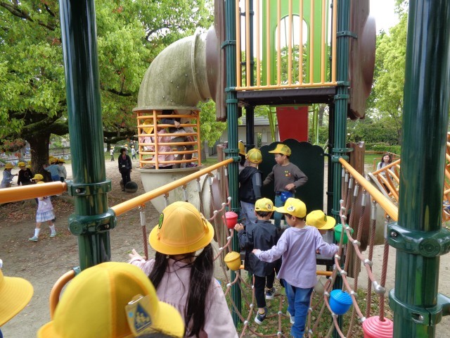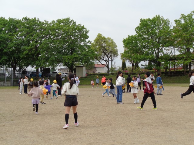1年生は、6年生のペアの子と一緒に萬葉公園に向かいました。公園では、みんなでおにごっこをしました。6年生が優しく声をかけてくれたので、1年生も安心した様子でたくさん笑顔が見られました。6年生と別れた後は、公園のブランコやすべり台などの遊具で遊びました。お昼のお弁当の時間には、うれしそうにお弁当を広げる姿が見られました。朝早くから準備していただき、ありがとうございました。