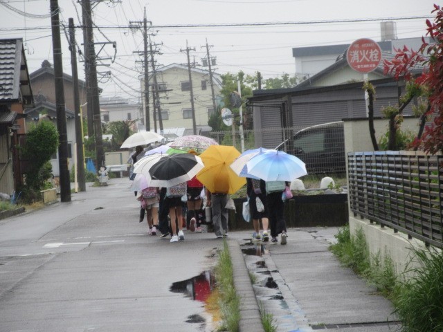 今日は雨の中での登校です。