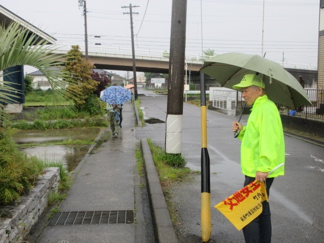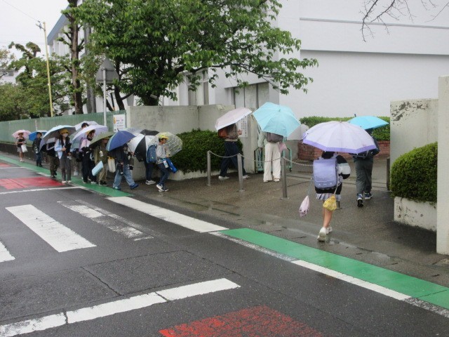 このような雨の日でも地域の方が登校の見守りをしてくださっています。ありがとうございます。