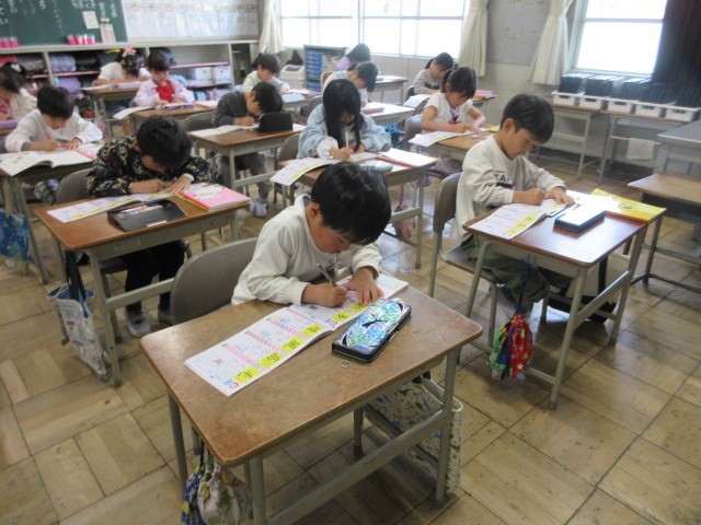 先生から注意する箇所の説明をしてもらってから空書きです。