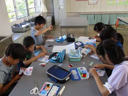 先週の玉どめ・玉結びに続き、今週はボタン付けに挑戦しています。慣れない作業に苦戦していましたが、先生の説明を聞いて取り組んでいました。
