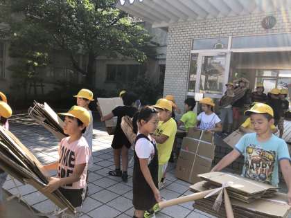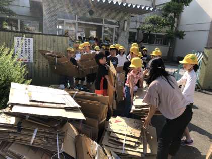 今日は、学校で出た資源ごみを回収場所まで運ぶ手伝いをしました。高学年として、てきぱき働く姿は頼もしく感じました。