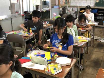 図工で「コロコロガーレ」の学習をしています。ビー玉が転がるおもしろい仕組みを考えて、みんな一生懸命作っています。出来上がりが楽しみですね。