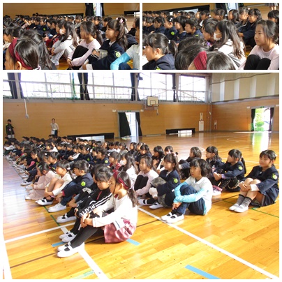 学習発表会に向けて、3年生の練習を見せてもらい、1年生の発表も見てもらいました。