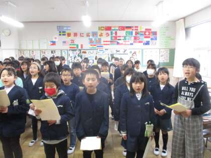 6時間目に、4年生全員が集まり、初めて6年生を送る会の練習をしました。流れの確認と歌の練習を行うとともに、1年の終わりが近づいていることを感じました。