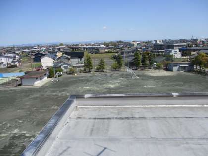 中舎の屋上からの写真です。学校のまわりには、どんなものがあるか観察してみてください。
