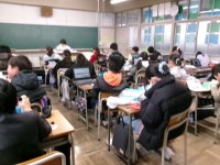 クラスの現状を分析して、自分たちのよい点やがんばりたい点を相談しています。
