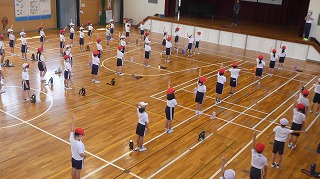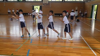 3クラス一緒に振り付けを確認しました。練習が始まってまだ間もないですが、多くの子が踊れるようになりました。ぜひご家庭で見てみてください。