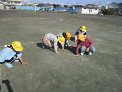 体育の時間、跳び箱の学習をしています。今日も、開脚跳びと台上前転の練習をしました。台上前転は、どの子もできるようになり、少しずつ高い段にも挑戦しています。理科の時間は、日なたと日かげの地面を触って、明るさやあたたかさ、しめり気を調べました。寒くなってきたので、みんな日なたで気持ちよさそうにしていました。