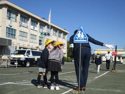 学区には細い道や踏切があります。自分の目で確認して安全に道を渡れるといいですね。