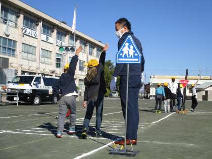 今日は交通安全教室で、道路の歩き方などを学びました。