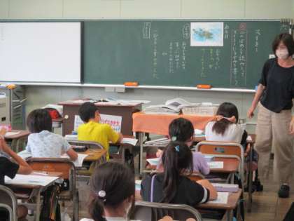 2年生の国語の授業では、「スイミー」というお話を学んでいます。場面ごとに「スイミー」に手紙を書きます。