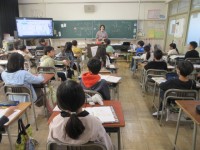 3年生の図工です。楽器を吹く自分の姿を表現しました。まもなく完成です。
