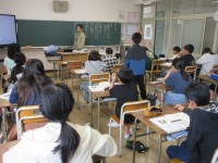 体育「ソフトバレーボール」の学習です。チームでどのような作戦を立てるとボールをつないで相手に返すことができるかを考えながら取り組みました。ボールを触る順番やポジショニングに気を付けながら、プレーしました。