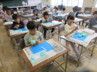 算数の授業です。たし算カードを使って、たし算の練習をしました。