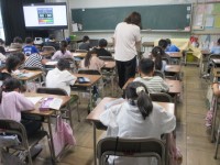 音楽の授業です。クリスマスの歌を歌ったり、「クリスマスメドレー」をききながら、カードづくりも楽しみました