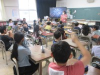 算数の授業です。三種類の長さの直線を利用して三角形をつくりました。辺の長さによって三種類の三角形ができました。