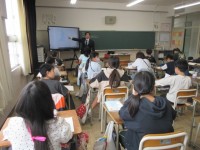 中学校の先生から、萩原中学校での生活について教えていただきました。