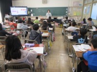 書写、国語の授業です。1枚目の書写では、毛筆で小筆の書き方を練習しました。
