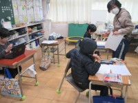 2学期からは、自分たちでできることを少しでも増やしていこうと、給食をお皿につけたり、給食をみんなの机に運んだりするようになりました。こぼさないように気をつけながら、みんなで協力して給食の準備を頑張ります。
