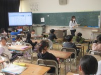 体育、国語、学活の授業です。3枚目の学活では、ALTの先生と「色」について英語の...