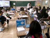 音楽、国語、図工の授業です。1枚目の音楽では、2つのリズムを重ねて楽しみました。