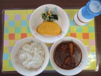 今日の献立は、ごはん、牛乳、てりどり、キャベツの梅かつお和え、のっぺい汁でした。