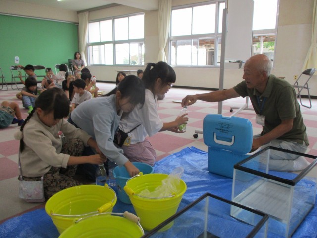 子どもたちはエビの生態系や飼育の仕方について学びました。