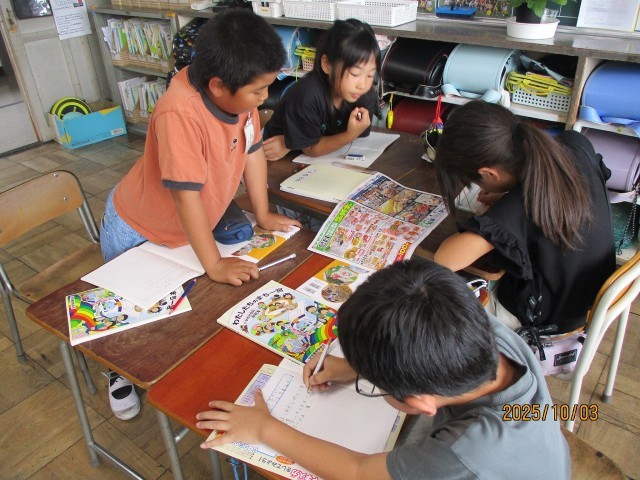 値段が見やすい、秋の味覚フェアの種類が多くて買いたくなる、営業時間が書いてあるなど、それぞれの広告から工夫や違いを見つけました。