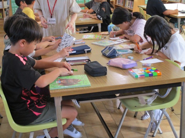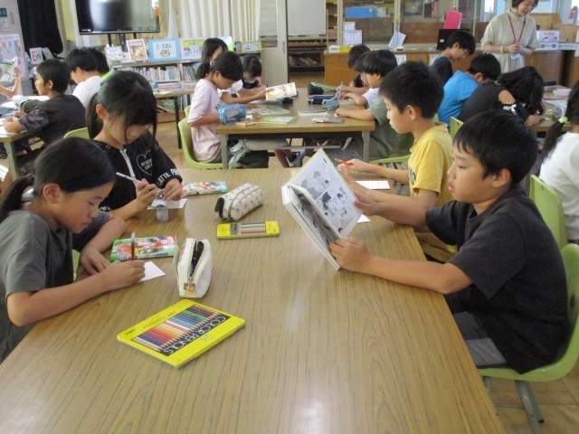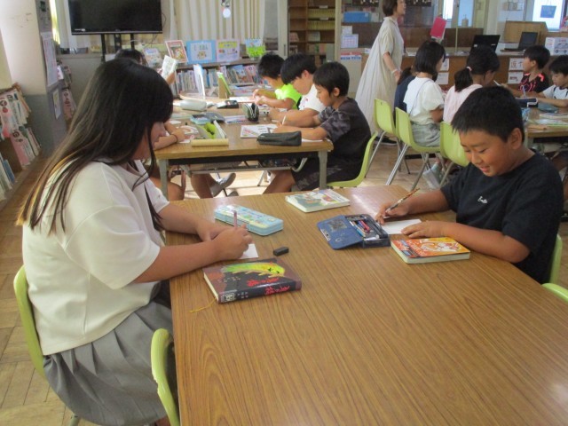 おすすめの本を見つけて、はがきに読書感想画をかきました。読書の秋をこれからも楽しみましょうね。