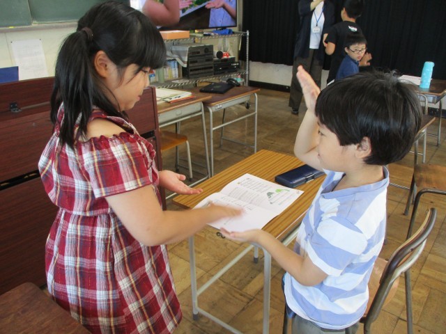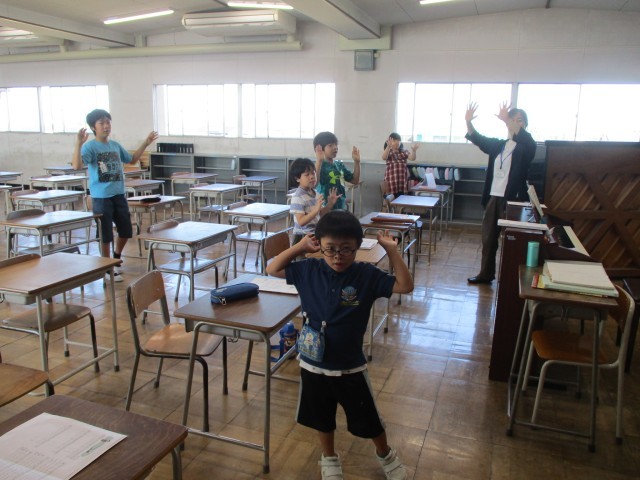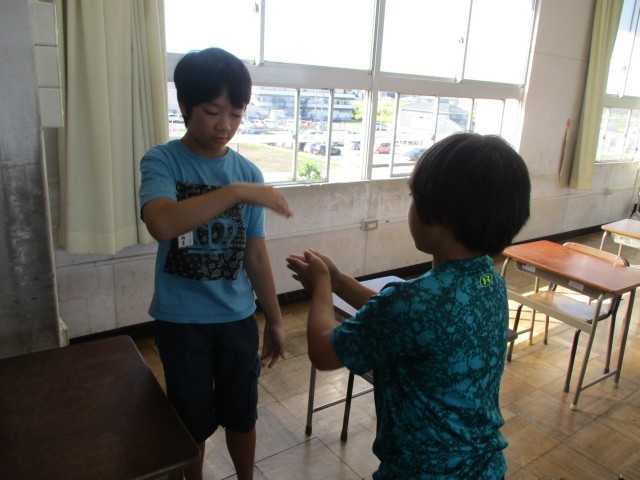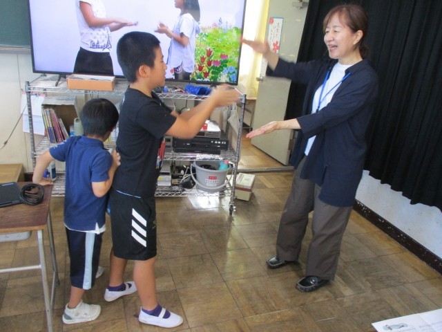 「手のひらを太陽に」を踊りながら歌いました。その後、「十五夜さんの餅つき」をして、「山びこごっこ」を歌い、「大きな古時計」を歌いながら演奏しました。